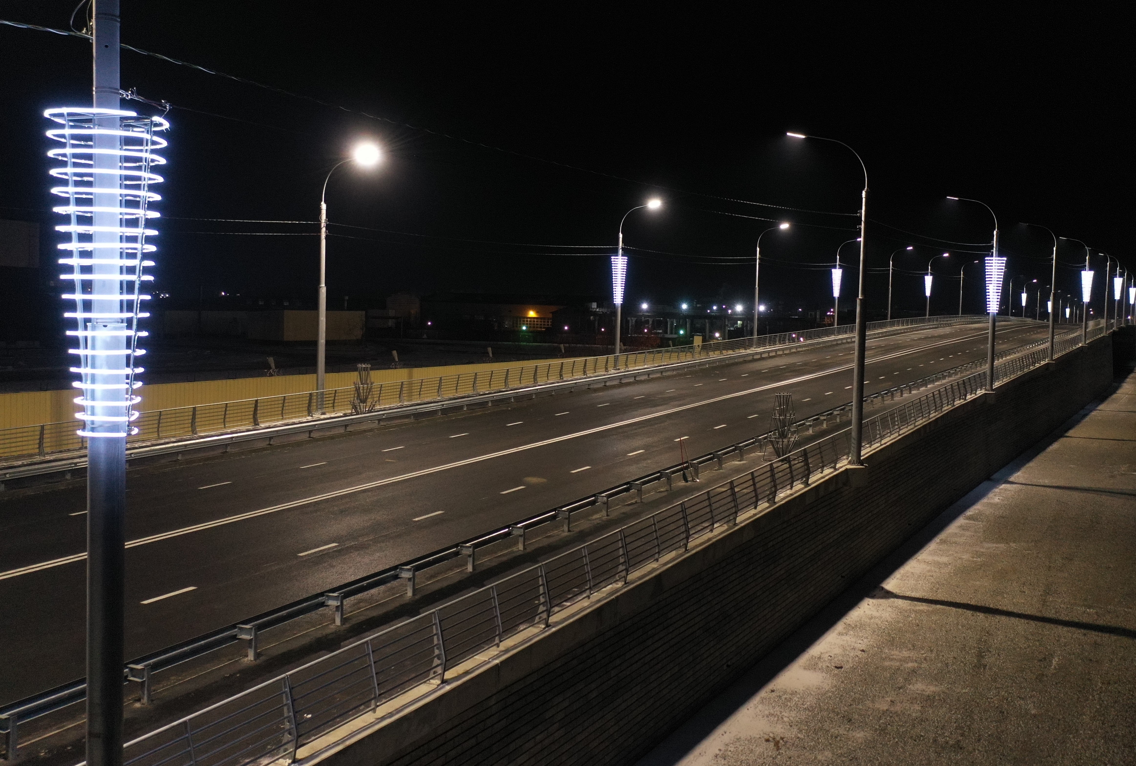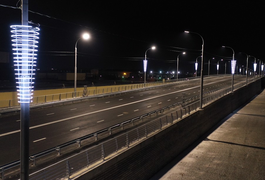 Центральная конструкция нового путепровода — металлическая, на всем протяжении проезжей части уложено асфальтовое полотно, с двух сторон обустроены пешеходные зоны, освещение. Организовано движение по 4 полосам.